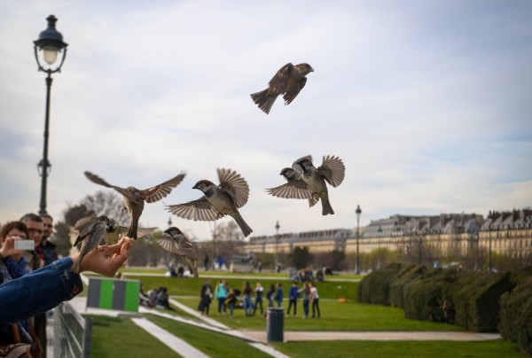 <<Parijs, park op weg naar het Louvre. Houd een stukje brood omhoog en de vogeltjes komen gewoon uit je hand eten! Zeer leuk, maar wel een beetje griezelig in het begin. Ik heb het op verschillende plekken geprobeerd, maar het lukte echter alleen op deze plek, vlak voor het Louvre.>> Foto en Tip van Nikki Nelen