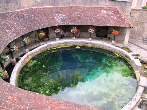 Tonnerre, een middeleeuws plaatsje in de Bourgogne. "La Fosse Dionne" een geheimzinnige naam voor een nog geheimzinniger natuurlijke waterbron met blauw/groene kleur midden in het centrum. Hier komt het water continue diep uit de aarde. Duikers hebben de bodem niet kunnen bereiken en daarmee weet men niet hoe diep de bron is. De Romeinen, die zich er net boven hadden gevestigd in Tornodurum, gebruikten de bron al voor hun drinkwater, een gedeelte van de trappen omhoog is nog te zien. Vanaf 1758 werd de bron handig omgetoverd tot de plaatselijke openbare wasplaats, vandaar de half-circulaire bebouwing. De wasvrouwen, met wasbord en wasgoed, maakten lange dagen voor een karig loon. In mei 1908 werd de locatie uitgebreid met uitlekbalken en schoorstenen om de was ter plaatse te koken. Foto en Tip van I. Calis
