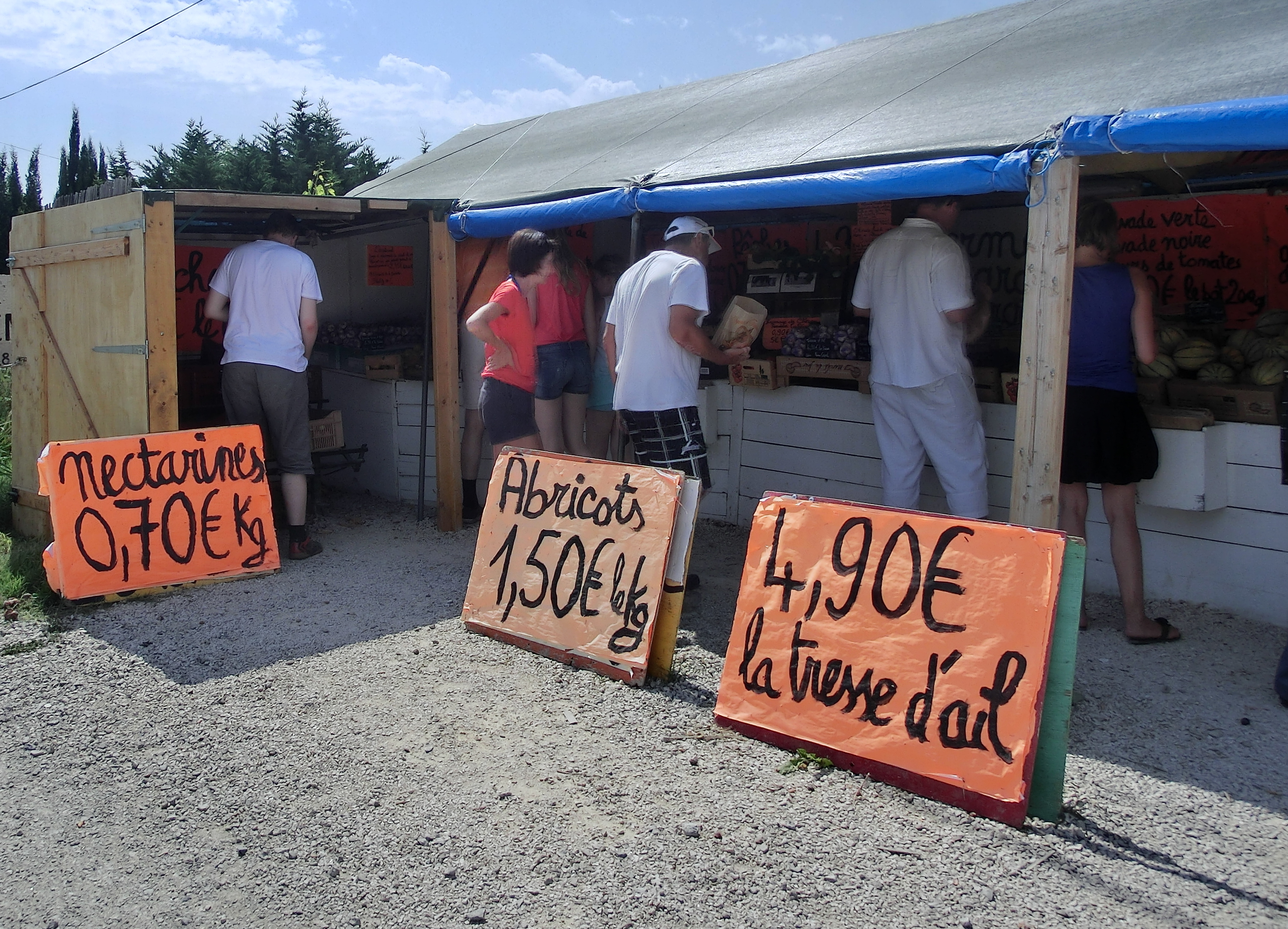 In de Camarque zijn langs de kant van de weg veel marktkraampjes te vinden waar je de plaatselijke producten (o.a. fruit) kunt kopen voor een leuk prijsje.
