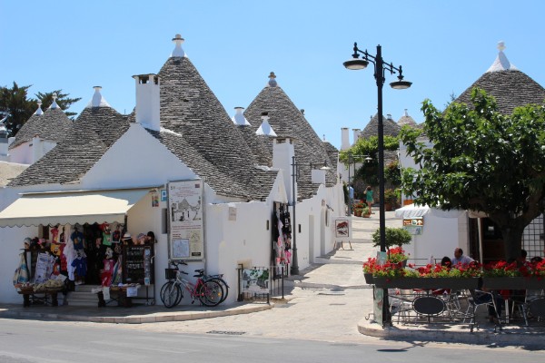 <<Niet ver van Bari bevindt zich het mooie Alberobello, het stadje van de trulli('s). Het lijken kabouterhuisjes maar toch....ze zijn vrij groot van binnen en aangenaam fris. Zo zijn er trulli('s) die bezocht kunnen worden, waaronder ook restaurants en souvenirswinkels. Zelfs voor de tv-liefhebbers van "Mooi en meedogenloos" is er de mooie kerk Sant-Antonio. Elk straatje heeft zijn charme, is wel heel toeristisch maar je moet de trulli(')s gewoon gezien hebben!>>