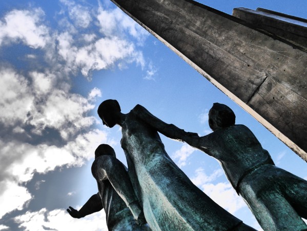 <<Monument aan de emigrant; een emigranten familie die de stad achter zich laat en gaan emigreren in de hoop op een betere toekomst. Tijden lang is het aantal emigranten op de Azoren erg hoog geweest, o.a.door slechte economie, hoge belastingen en slechte landbouwopbrengsten. Het tij is aan het keren voor de Azoren, daar veel mensen worden aangetrokken door de rust, ruimte en de prachtige natuur. São Miguel is prachtig; mooie natuur, kunst/cultuur en vriendelijke bevolking.>>