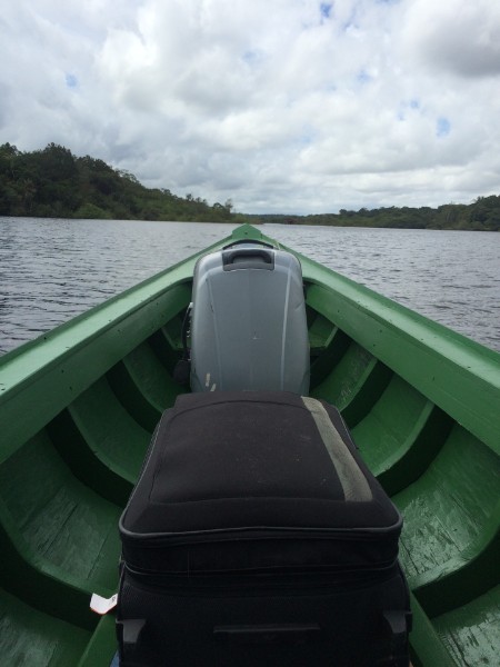 <<De transfert van het hotel naar de luchthaven op een zijarm van de Rio Negro rivier. Het geeft in 1 foto de eenvoud en back-to-basics weer in Zuid-Amerika. Transferts moeten niet altijd in luxe autocars of taxi gebeuren.>> Foto en Tip van S. Himpe