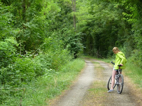 Foto E. Dacaluwe. De foto van een fietstocht toont de natuur van de regio en laat tegelijk zien hoe ontspannen personen in deze omgeving zijn.