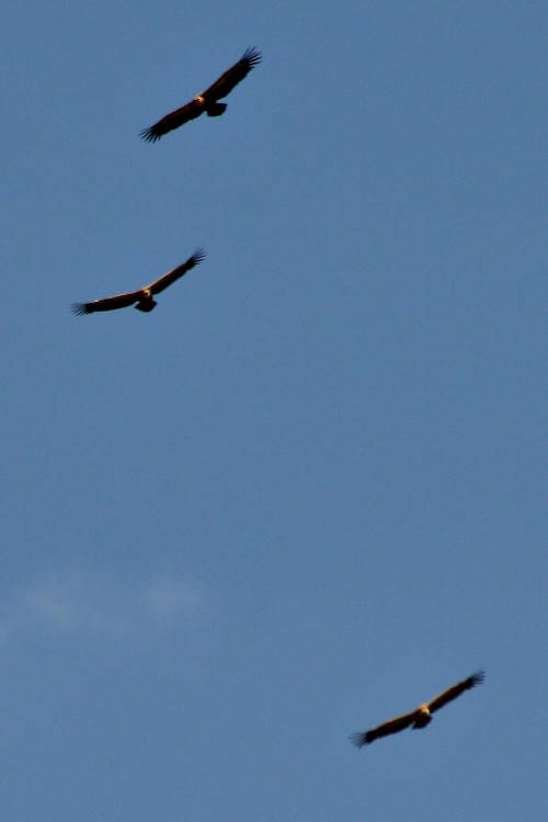 <<Vale gieren cirkelen boven het dal van de rivier la Jonte, een zijrivier van de Tarn in Frankrijk. Van oudsher leefden deze gieren in dit gebied maar raakten uitgestorven. Jaren geleden zijn ze wederom uitgezet en planten zich goed voort. Met de omliggende boeren zijn afspraken gemaakt om kadavers van schapen te laten liggen. In het dal van de rivier la Jonte is een informatiecentrum gebouwd die informatie geeft omtrent het leven van de hier nu levende gieren. Zij broeden ook rondom het centrum op allerlei rotsrichels. Bijna dagelijks zweven de gieren op de thermiek van de lucht boven het dal op zoek naar prooi. Soms zijn ze met wel meer dan 25 exemplaren. Altijd een imposant gezicht.>> Foto en Tip van K. de Vries