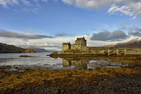 <<Kasteel Eilean Donan is een van oorsprong dertiende-eeuws kasteel, gelegen op 0,8 kilometer afstand van Dornie, op een eiland in Loch Duich in de Schotse regio Highlands. Aan het begin van de achttiende eeuw werd het kasteel opgeblazen. Aan het begin van de twintigste eeuw werd Kasteel Eilean Donan uitgebreid gerestaureerd en opengesteld voor publiek. Het is een prachig oud kasteel en ingericht als museum; ook zijn er verschillende films in opgenomen. Het kasteel ligt in een prachtige omgeving, beslist de moeite waard om het een keer te bezoeken.>>
