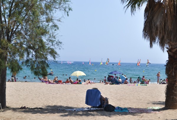 Dichtbij de haven bevindt zich het strand van Fréjus. Hier kun je lekker luieren onder de palmbomen en een frisse duik nemen in de zee. De zee is goed afgebakend met boeien en lijnen zodat je nooit te ver kunt gaan. Ook is er een EHBO-post en zijn er tal van kraampjes waar je drinken, ijsjes en kleine snacks kunt kopen. Een advies kan zijn dat je zelf een ligstoel meeneemt. Je kunt hier namenlijk enkel ligstoelen huren bij zogeheten “Privé-plages”. Hier betaal je bijna € 15,00 per ligstoel per dag. Dit kan dus oplopen als je er elke dag 1 wilt.
