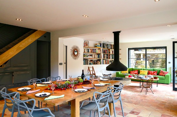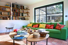 De gîte heeft een zeer ruime leefruimte met open keuken, eethoek, leeshoek en een hangende open haard. In de leeshoek vindt u verschillende boeken gewijd aan kunst, (pre)historisch erfgoed, topografische kaarten, lees- of stripboeken voor groot en klein. Openslaande ramen brengen u in de tuin en bij het zwembad die baden in het licht en voor een heerlijk glas wijn is er de wijnkelder.