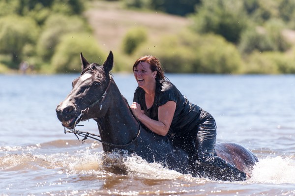 << Omdat het plezier eraf straalt en zowel paard als ruiter genieten!>>