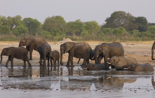 Een schitterend moment om mee te maken als je verblijft in Hwange National Park. Hier rijdt men tegen zonsondergang naar een platform waar meestal hele kuddes olifanten naar het water toetrekken....Men staat daar in een jeep of op het platform heerlijk van te genieten...een droombeleving.