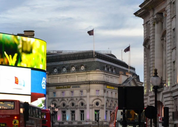 <<Picadilly Circus is zeer mooi om ‘s avonds naartoe te gaan. Op het plein waan je je dan in een klein New York, door de grote lichtreclames op de gevels van de gebouwen rondom. In de buurt van Picadilly vind je een groot aantal theaters, waar je de keuze hebt tussen de vele musicals die daar gespeeld worden.>> (kalender en kaarten voorstellingen)
