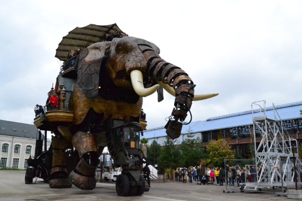 Voor mijn studie (architectuur) zijn we naar Nantes afgereisd. De stad is bijzonder omwille van de omgang met de voormalige industrie die er was. Zo zijn verschillende oude loodsen omgetoverd tot prachtige parken, culturele centra of gewooon in cafés en winkels. Nantes is ook bekend van "les machines de l'île" die je op de foto ziet. In dit geval is het de olifant die rond paradeert, water spuit en mensen vervoert door een klein gedeelte van de stad. De detaillering van dit dier is ongelofelijk, zelfs de oogleden van de olifant werken echt. Voor dit alleen al is een bezoekje aan Nantes de moeite waard. Foto en Tip van L. Debbaut
