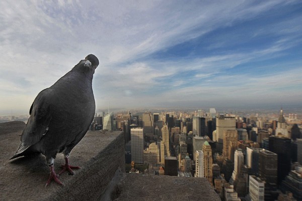 <<Bezoek het Empire State Building, geniet van het prachtige uitzicht en wie weet kom je deze duif tegen op 86 hoog.>>