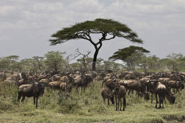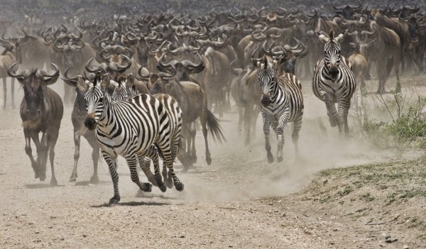 <<Migratie van gnoes en zebra's in de Serengeti. Een prachtig spektakel van duizenden gnoes, een geweld van geluid en stof, een sensatie om mee te maken. In september gaan de gnoes over de Mara rivier van Kenia naar Tanzania. Eenmaal in de Serengeti moeten ze ook weer over de Grumeti rivier; dit is gelukkig de veilige rivier zonder nijlpaarden en krokodillen.>>