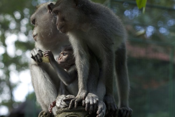 De apen in Monkey Forest. Ze kunnen wel brutaal zijn, maar over het algemeen is het vooral heel leuk om de apen te zien. Als je bananen koopt komen ze zelfs op je klimmen om een banaan te pakken.