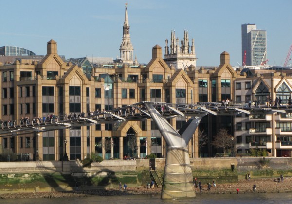 <<Met de officiële naam de Millennium Bridge, werd deze brug geopend in juni 2000, maar kort daarna alweer gesloten wegens problemen met de structuur. Al gauw kreeg de brug de bijnaam Wobbly Bridge, de wankele brug.>>