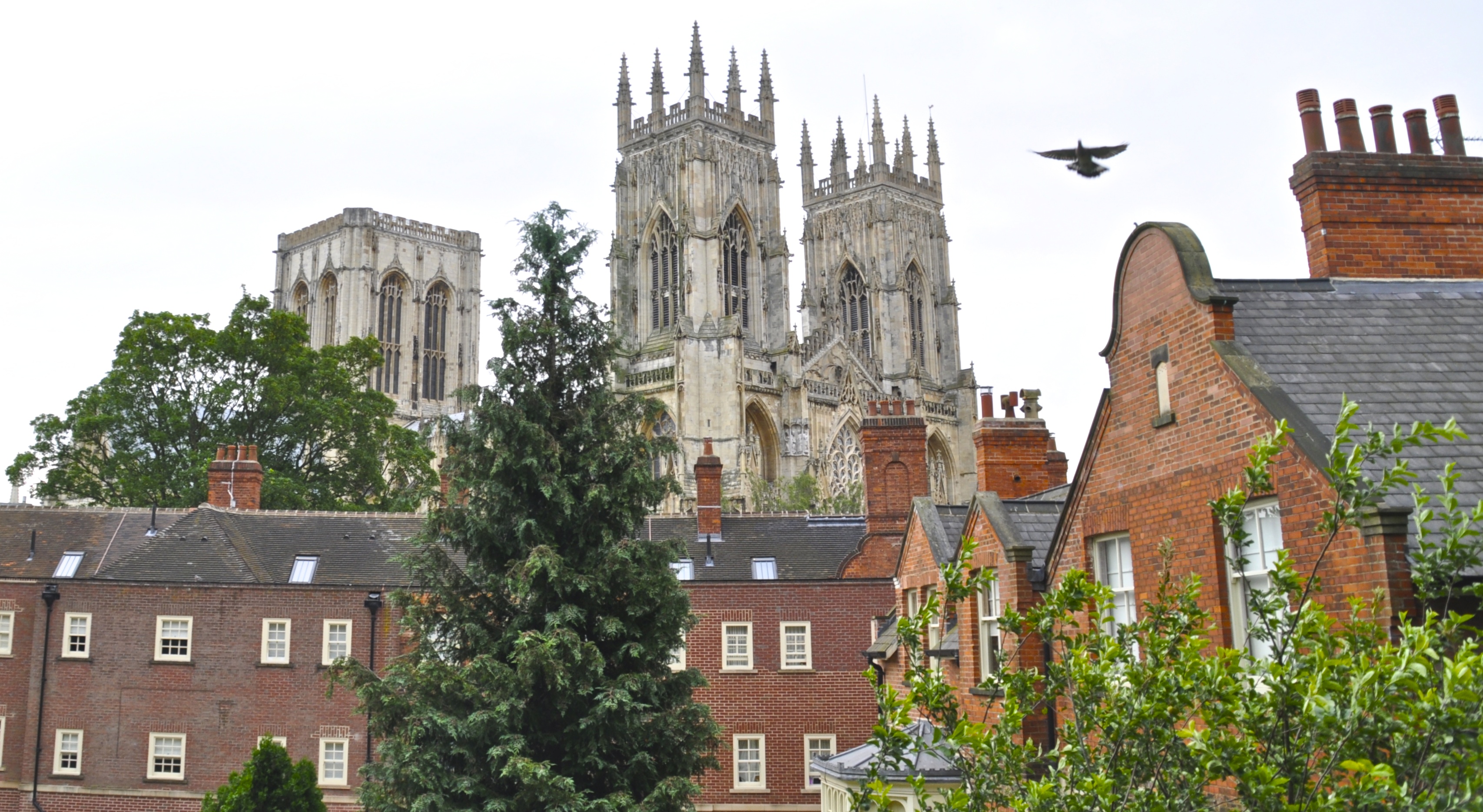 In York kun je heerlijk wandelen over de stadswal. Vanaf daar heb je ook fantastische uitzichten over de stad zoals hier op de Kathedraal.